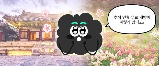 ✅ 추석 연휴 기간 궁궐·수목원 등이 무료 개방돼요.