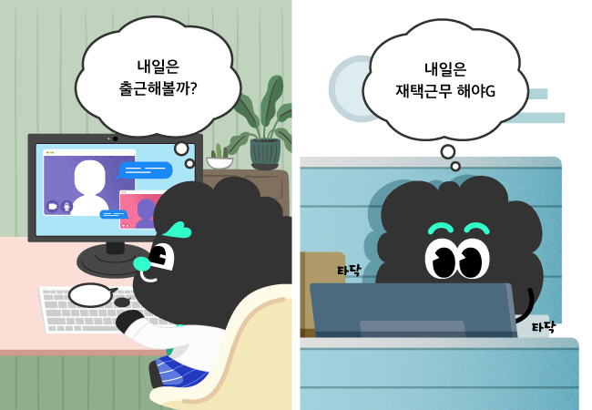 이제는 어디에서 일하는지가 중요해진 시대, 우리나라는 재택근무를 활성화하기 위해 정부에서도 발 벗고 나서기 시작했는데요. 과연, 바이러스가 잠잠해져도 재택근무는 우리와 함께 갈 수 있을까요? 재택근무냐, 출근이냐, 아니면 요즘 대세라는 하이브리드 근무냐, 그것이 문제!🔥 사원님들은 어디에서 일하고 싶으신가요?🤔