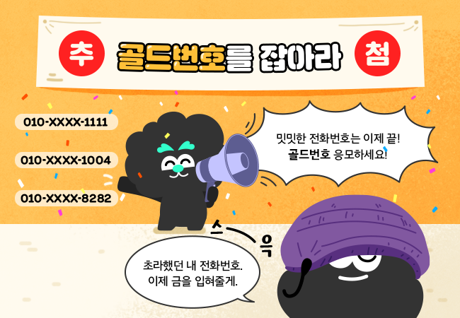 사원님들의 전화번호 뒷자리는 뭔가요? 가족 모두가 쓰는 공용 번호? 아니면 대리점이 점찍어 준 번호? 그것도 아니면 한때 덕질했던 연예인의 생일? 갑자기 왜 소중한 개인 정보를 캐묻냐고요?😨 혹시 사원님의 전화번호가 ‘골드번호’인가 해서요~!😁