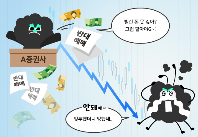 반대매매는 투자자가 증권사로부터 외상으로 산 주식(미수거래)의 거래대금을 못 갚거나 담보로 잡은 주식이 하락했을 때 증권사가 주식을 강제 처분하는 걸 말하는데요, 보통 반대매매가 이뤄질 경우 증권사는 상환에 필요한 만큼의 주식 물량을 개장과 동시에 하한가로 팔아버린다고 해요. 결국 반대매매 매물이 많이 나올수록 해당 종목의 주가가 낮아지게 되는 거죠.📉
