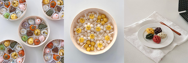 반면 요즘 송편은 단순히 지역별로 다른 것을 넘어 ✨화려하게 변신하고 있어요! 먼저, 보기 좋은 떡이 먹기도 좋다는 말이 있잖아요? 반달 모양이 아닌 꽃, 스마일, 과일, 나뭇잎 등 다양한 모양으로 만들어지고 있는데요. 차마 먹기가 아까울 정도의 비주얼로 추석뿐만 아니라 선물용으로도 인기 만점!💕 실제로 송편을 직접 만들어 볼 수 있는 원데이 클래스도 많대요.