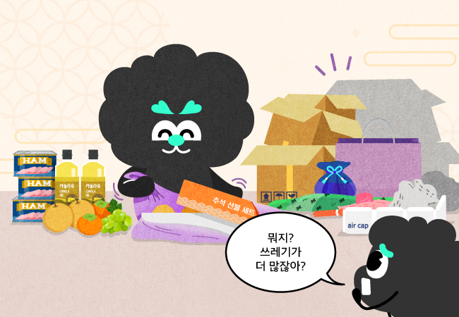 사원님들은 이번 추석 선물로 어떤 걸 받으셨어요? 🍎🍍과일 세트? 아니면 역시 추석 선물의 스테디셀러, 햄 통조림 세트? 💸금일봉 두둑하게 받으신 분도 계신가요? (부럽다…🤑) 우리 그런지 사원은 받아온 선물을 정리하고 보니 쓰레기통이 가득 차버려서 ‘내가 선물이 아니라 쓰레기를 받아온 건가?😅’ 싶었대요.