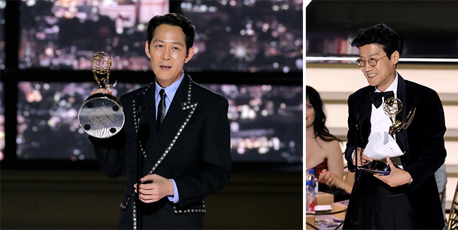 ‘제74회 에미상’에서 남우주연상을 받은 배우 이정재와 감독상을 받은 황동혁 감독 / 출처 : 게티 이미지