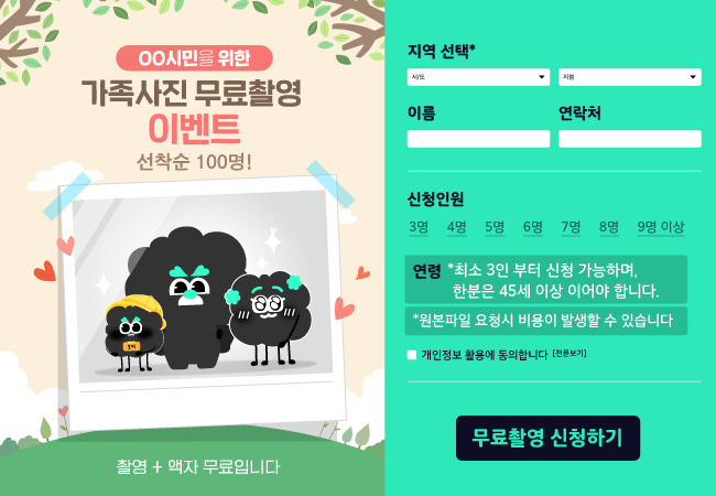 특히 이벤트 응모 자격 중엔 가족 중 ‘한 분 45세 이상 포함’이라는 조건이 있는 경우가 있는데요, 그 이유가 부모님👵👴까지 모시고 가서 장시간 고생해서 찍었는데 무료 액자만 받고 나오기 어렵다는 걸 악용하기 위해서래요.😈