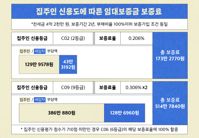 집주인 신용등급이 낮을수록⬆ 높은 보증료⬆