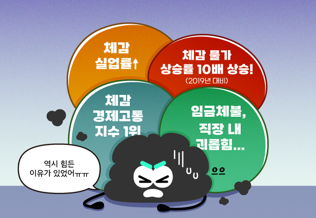 전국경제인연합회가 국민이 느끼는 경제적 어려움을 수치화한 경제고통지수를 활용해 세대별 체감 경제고통지수를 산출했는데요. 올해 상반기 기준, 15세에서 29세 사이 청년층의 체감 경제고통지수는 전 연령대 중에서 가장 높은 25.1이었어요. 다른 세대가 12.5~16.1인 것과 비교하면 월등히 높은 수치예요. 또 올해 상반기 청년층이 체감한 📈물가상승률은 5.2%였는데, 코로나 이전인 2019년과 비교하면 무려 10배나 높은 수준이라고. 청년층이 다른 세대보다 물가상승을 크게 체감한 원인으로 소비 지출 비중이 높은 음식·숙박, 교통, 식료품 가격 ↗상승이 지목되는데요. 음식·숙박은 26.6%, 교통은 12%, 식료품은 8.5%나 상승했다고 해요. 경기침체로 🥶얼어붙은 취업시장도 청년층의 경제적 어려움을 더한 것으로 보이는데요. 올해 상반기 청년 체감 실업률은 19.9%로 이 또한 다른 연령대에 비해 높았다고.