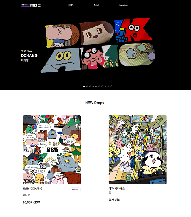 NFT의 장점 중 하나는 사고파는 게 쉽다는 것! NFT 마켓플레이스(거래 플랫폼)에서 누구나 거래할 수 있는데요. 마침 오늘 NFT 마켓플레이스 ‘Archive by MBC’가 리뉴얼되어 오픈했어요.🎉 리뉴얼 오픈 기념으로 21명의 아티스트 작품을 차례대로 선보인다는데요. 만화가 디디강 작가를 시작으로 매주 한 명의 작가의 작품이 공개되고요. 작품뿐 아니라 작가의 인터뷰도 만나볼 수 있대요. (1번째 주자 디디강 작가의 독점 인터뷰는 여기!) 좋아하는 작가의 새로운 작품을 겟챠! 할 수 있는 특별한 기회! 게다가 인기 작가와 MBC 명장면의 콜라보 작품도 나올 예정이래요. 사원님도 명장면 겟! 하러 가보실래요?