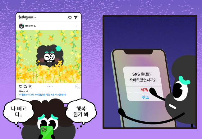 SNS에는 예쁘고 좋은 모습을 올리는 경우가 많은데요. 타인의 가장 행복한 순간과 나를 비교하며 우울감에 빠지는 분들이 없길 바라요.🙌