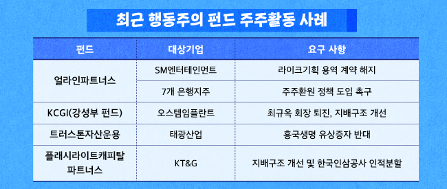 지난 수요일, 하이브가 이수만 전 SM엔터테인먼트(SM) 총괄 프로듀서의 지분을 인수하면서 SM 최대 주주로 등극해 화제가 됐죠. 그런데 그 시작에는 ‘행동주의 펀드‘가 있다는데요. 최근 국내 주식시장에서 ‘행동주의 펀드’의 활약이 두드러지고 있어요!