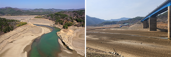 가뭄으로 말라버린 동복댐과 주암댐의 모습 / 출처 : 연합뉴스