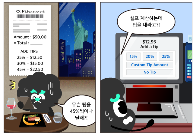 미국에서 🍴밥 먹었는데 “팁 45% 주세요”
