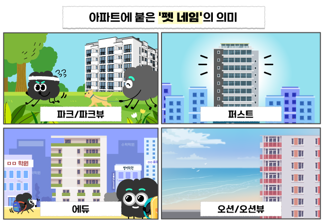 ✅ 아파트에 ‘파크뷰’, ‘스퀘어’ 등 펫 네임을 붙이는 게 유행이래요.