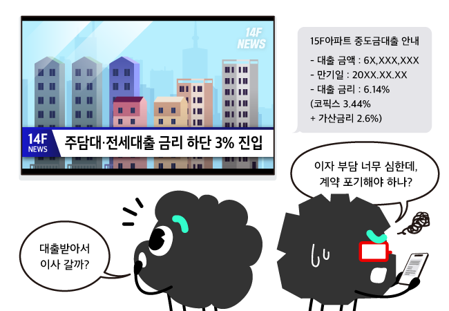 중도금 대출은 재건축이나 신규 분양 아파트에 입주하는 사람들 중 일정 요건을 충족한 이들에게 별도 신용심사 없이 금융기관이 일괄 실행하는 대출 상품으로 건설사가 주선하는데요. 중도금 대출은 👥집단대출로 취급돼 금리인하요구권을 사용할 수도 없다고 해요.🙅 한번 중도금 금리가 정해지면 장기간 해당 금리로 이자를 부담해야 하는데요. 이에 지난 3월, 국회 홈페이지에 ‘중도금 가산금리 인하 및 시스템 개편에 관한 청원’이 올라오기도 했어요.