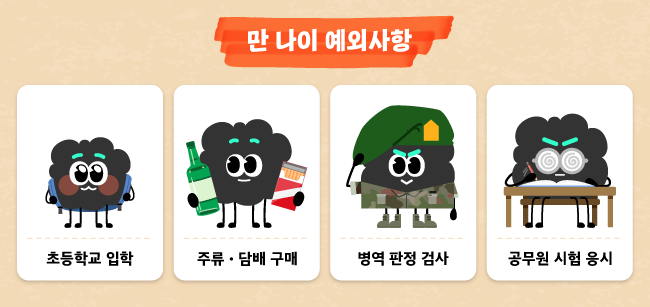 ✅ 국민 편의상 불가피한 경우에는 예외적으로 만 나이를 적용하지 않는다고 해요.