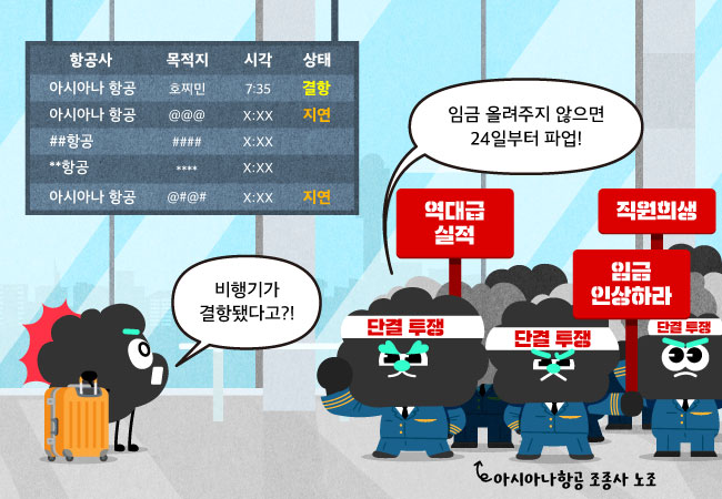 ✅ 아시아나항공 조종사 노조 투쟁으로 국제선 항공편이 결항됐어요.