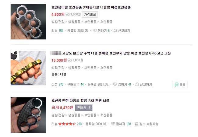 온라인에서 판매 중인 너클 / 출처 : 네이버 쇼핑 캡처