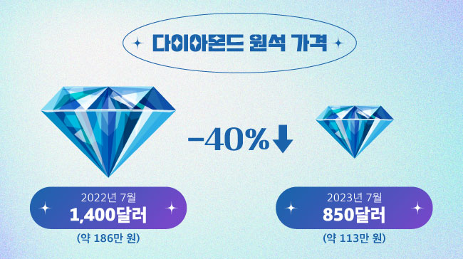 ✅ 다이아몬드 원석 가격이 1년 사이에 40%가량 급락했어요.