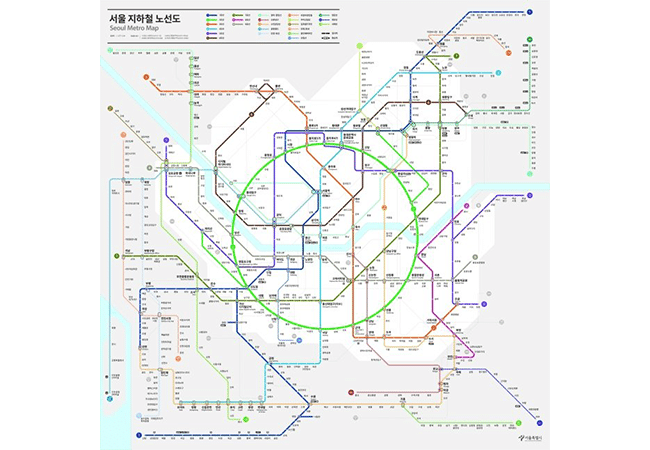 이에 서울시는 시각·색채·디자인·인지·교통 등 분야별 전문가들의 자문을 거쳐 모두가 읽기 쉬운 ‘서울 지하철 노선도 디자인’을 발표했는데요. 개선된 노선도는 많은 노선과 환승역을 쉽게 인지할 수 있도록 만들어진 ‘8선형’을 사용했다고 해요. 8선형 디자인은 1933년 헨리벡이 런던 지하철에🚊 처음 적용한 것으로 수평·수직·45º 등 대각선과 직선만 허용해 이용자가 쉽게 인식할 수 있다고 하는데요. 8선형과 함께 원형 형태를 적용한 2호선 순환선을 중심에 두고, 지리적 정보를 고려한 노선 적용을 통해 이용자가 읽기 쉽고 효율적으로 길을 찾을 수 있도록 개선했다고!