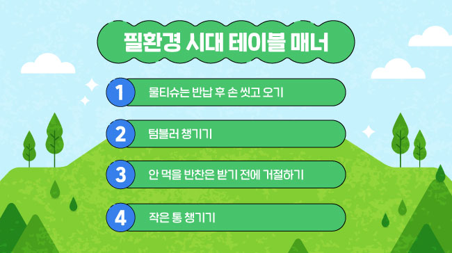 〈별일 아닌데 뿌듯합니다〉에 나오기도 했던 필(必)환경 시대 테이블 매너에 대해 설명해 드릴게요.
