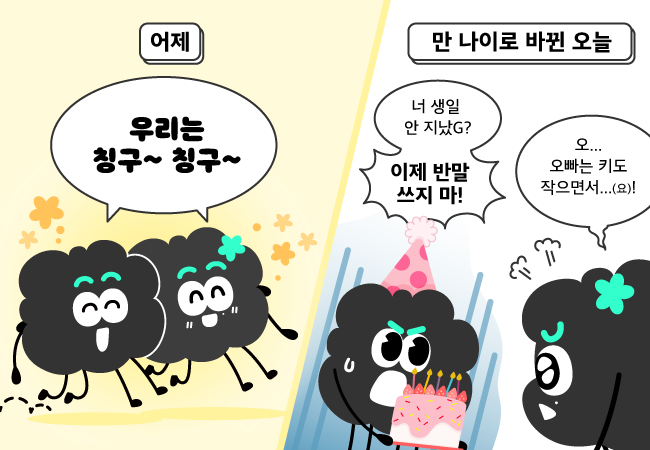 · 만 나이 : 태어났을 때 0살로 시작해 생일이 지날 때마다 한 살씩 먹는 방식이에요.
