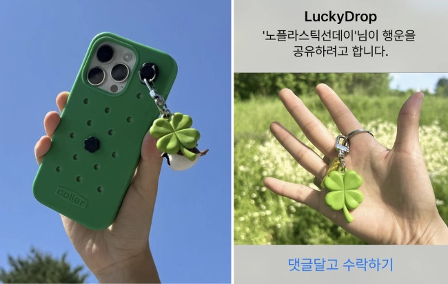 매일 운세를 확인할 수 있는 키링도 있는데요. 노플라스틱선데이의 ‘태그미 럭키 키링’은 스마트폰 NFC 안테나에 키링을 태그하면, 매일 나의 운세와 함께 오늘의 행운을 확인할 수 있어요. 🍀사용방법은 간단해요. 네잎클로버 모양의 키링을 스마트폰에 태그하면 ‘오늘의 운세보기’ 창이 뜨고요. 몇 초만 기다리면 ‘아이디어가 샘솟는 기분 좋은 날이 되겠어’ 등의 운세와 함께 행운의 색상, 숫자, 음식 등이 펼쳐져요. 노플라스틱선데이에 따르면 태그미 럭키 키링은 업체의 전체 상품 중 가장 많은 판매량을 기록했다고!