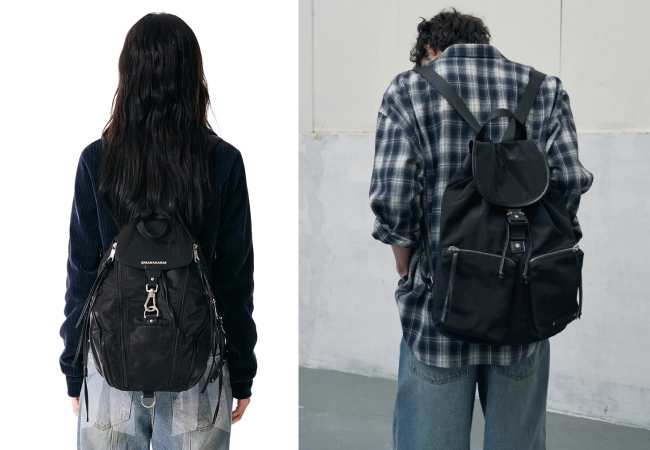 자연스럽게 쳐지는 쉐입의 나일론 백팩인데요. 은은한 광택감이 있는 나일론 원단으로 만들어져 세련된 느낌이에요. 수납공간이 여유로워 16인치 노트북도 들어간다고! 화려한 패턴과 디테일이 싫은 분들께 데일리 백팩으로 제격이겠죠?! 💰가격은 95,000원.