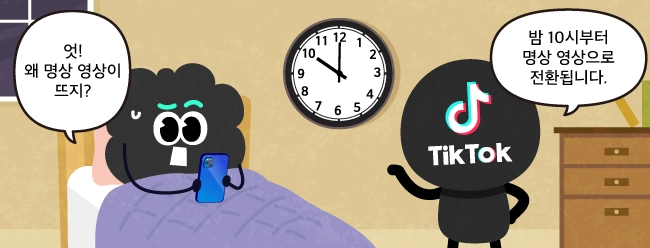 틱톡이 청소년 사용자의 심야 이용을 제한하기 위해 새로운 기능을 도입했는데요. 바로 밤 10시 이후 청소년 피드를 명상 영상으로 전환하는 ‘와인드 다운’ 기능이에요. 이는 만 18세 미만 청소년 사용자에게 기본 설정되는데요. 만 14-15세 사용자는 밤 9시 이후, 만 16-17세 사용자는 밤 10시 이후 일반 콘텐츠 대신 차분한 음악과 호흡 운동이 포함된 명상 화면이 표시돼요.