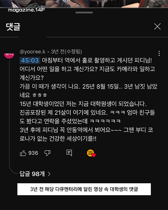 Credit. 유튜브 <KBS 다큐3일>, @vj4001
