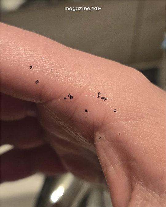 2025.01.08 share 카카오톡 라인 페이스북 트위터 복사 스크랩 좋아요1 떨어진 글자가 타투가 되. 2025.01.08 에디터 | 김가은 플라스틱병에서 떨어져 나온 글자들 🅰️ 시간이 지나 서서히 떨어져 나온 프린팅이 때로는 새로운 디자인을 만들어 내기도 합니다. 질서를 벗어나 흐트러진 글자들의 모습, 에디터의 눈에는 꽤 멋진 예술 작품으로 보이네요.✨ 📸 @2022dirt Prev 레이의 인스타 감성 Next 귀가 시려워도 겨울에는 줄 이어폰 목록