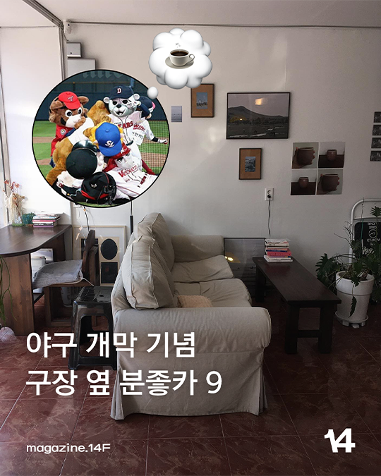 KBO(@kbo.official) 프로야구 개막을 맞아 설레는 마음으로 추천하는 구장 근처 느좋 카페 9곳.💬 야구 직관 전 포근한 분위기에서 카페인 충전, 어떠세요?🤤