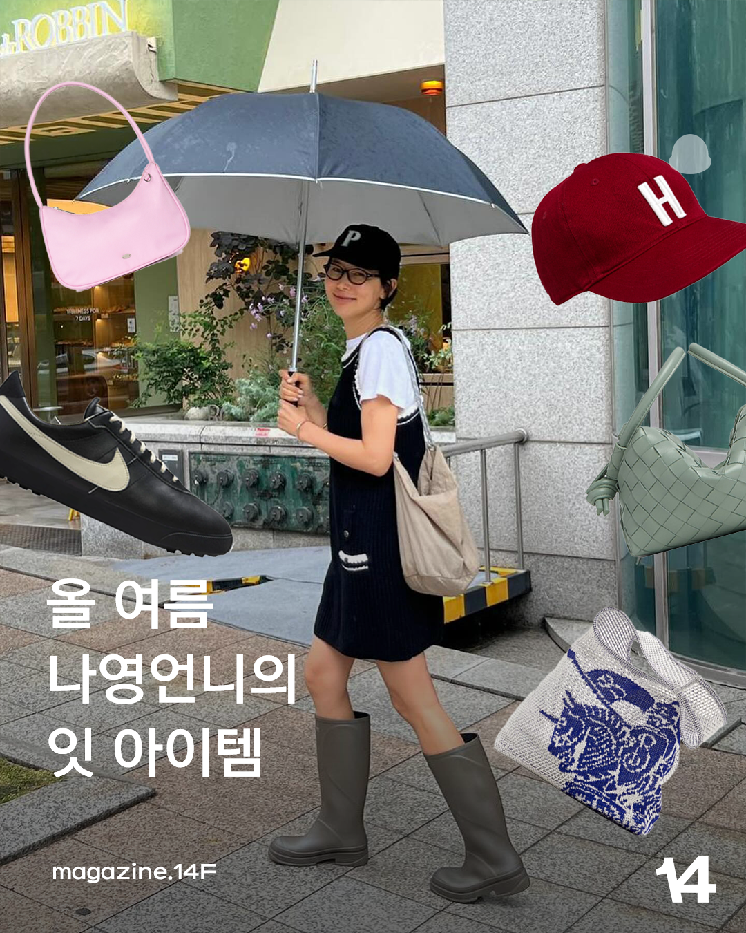 올 여름에도 어김없이 센스 넘치는 패션을 선보인 그녀. 가벼운 질감의 똑단발로 한껏 시원한 여름 분위기를 자아내고 있는데요.✨ 카키 컬러의 레인부츠부터 레드 포인트 캡까지, 찰떡같은 아이템들을 매치한 모습. 그녀가 픽한 올해 여름 잇 아이템을 에디터가 정리해 봤어요.🧷