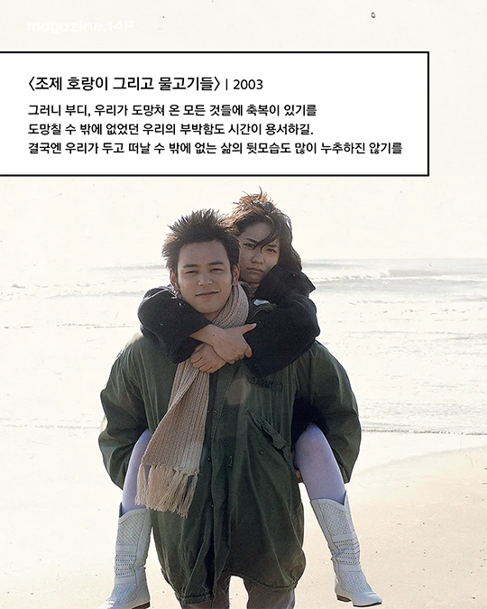 참신한 표현들로 정리된 이동진 평론가의 짧은 한 줄 평. 글이 길지 않고 읽기 쉬우며 영화의 특징을 명확하게 집는 것이 특징이죠. 하지만 한편으로는 좋은 영화에 대한 글을 길게 읽고 싶을 때도 있는데요. 이동진 평론가의 블로그 <언제나 영화처럼>에서 찾은 칼럼들. 그 중 우리의 삶을 관통하는 몇 줄의 문장들을 소개합니다.🎬