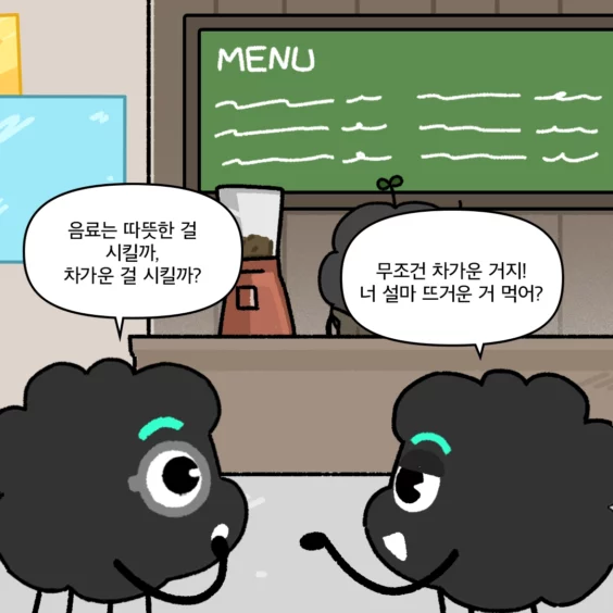 따뜻한 음료를 보고 경악을 하는 친구들도 있더라고요.😖